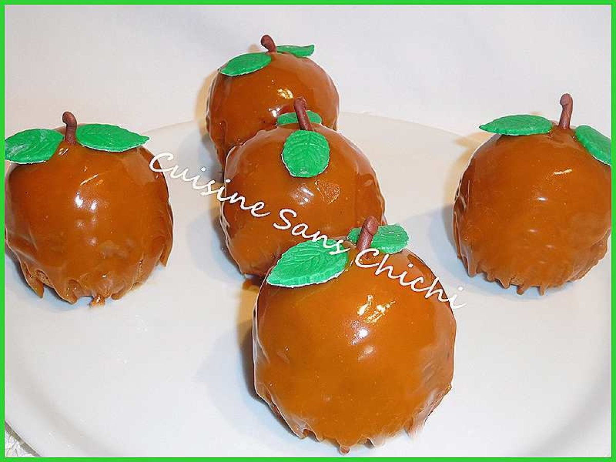 Dessert d'automne aux pommes, glaçage miroir caramel.