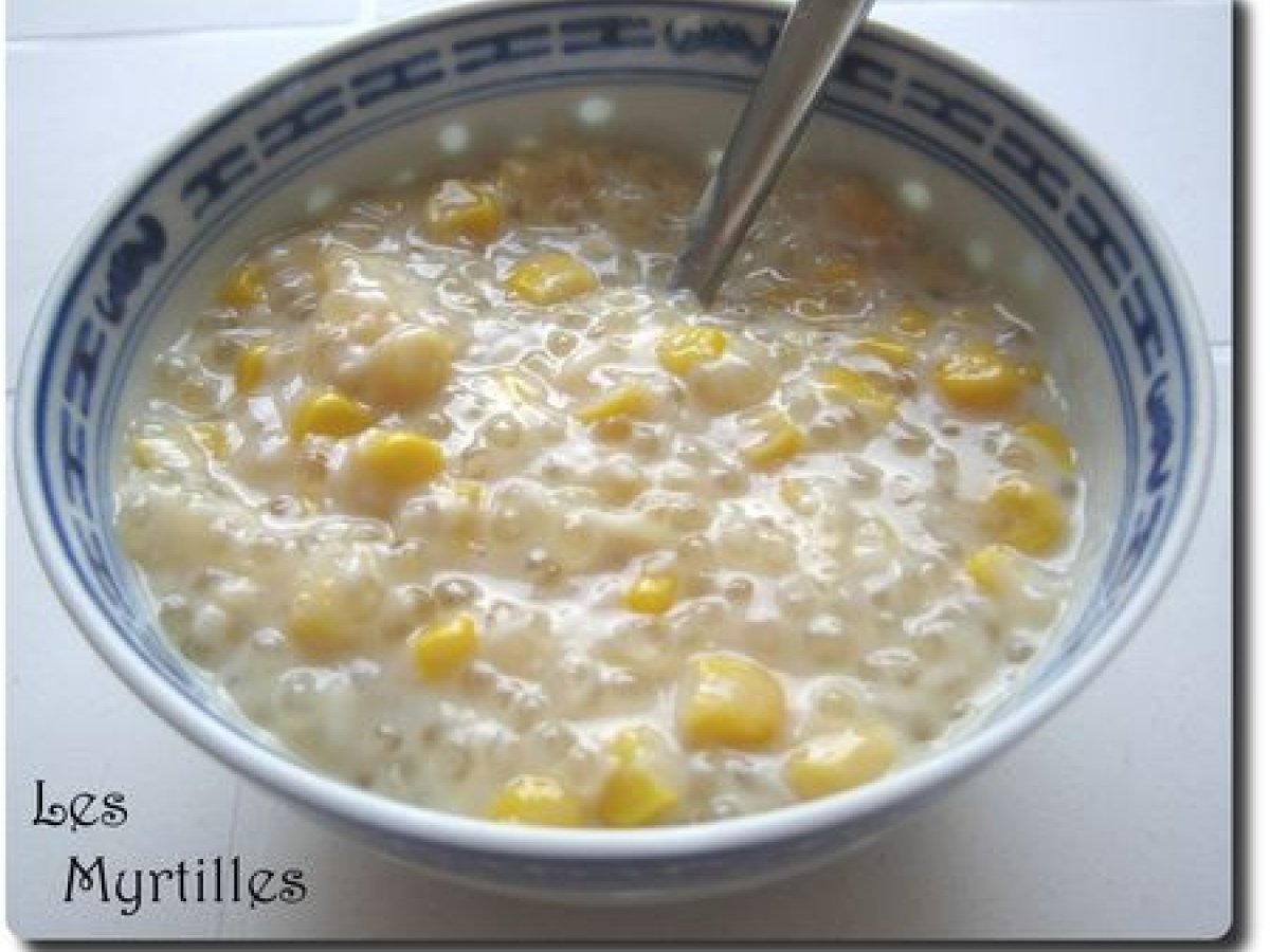 Dessert laotien tapioca, coco, maïs PrécédentSuivant Dessertfacile45 min161 Kcal Envoyer cette recette à un ami Imprimer cette page Poser une question à l'auteur Publier votre photo de cette recette Ingrédients 6 600 g lait soja vanille ou lait d'amande bio 30 g de poudre de noix de coco bio 50 g de perles de tapioca 50 g de sucre blond bio 200 g environ de maïs bio en boîte Coût estimé: 2.05Euros€ (0.34€/part)