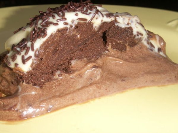 Dôme aux chocolats blanc et praliné et son coeur de mousse chocolat noir