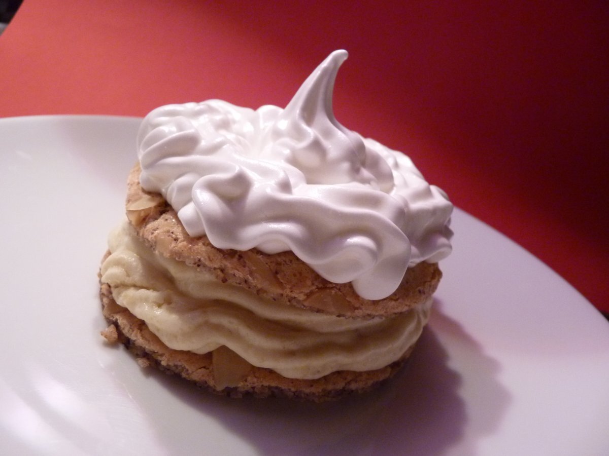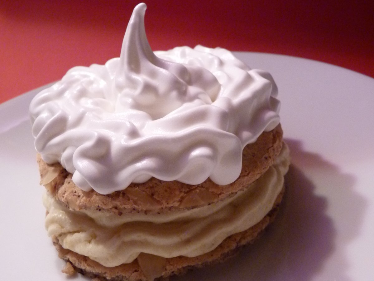 Entremet à l'ananas PrécédentSuivant Dessertmoyen35 min Envoyer cette recette à un ami Imprimer cette page Poser une question à l'auteur Publier votre photo de cette recette Ingrédients 4 Les ananas pochés : 200g deau 60g de sucre en poudre 1 gousse de vanille 3 tranches dananas La dacquoise: 30g de farine 85g de poudre de noisettes 85g de sucre glace 50g de sucre 140g de blanc duf La mousse exotique : 100g de bananes mûres, 35g de jus de citron, 40g de sucre en poudre, au lieu de 50 15g de jus dananas jai mis du jus frais de fruit de la passion-, 6.5g de gélatine, 165g de crème fleurette. La meringue italienne collée : 50g de blancs doeufs, 80g de sucre, 30g deau, 1.8g de gélatine.