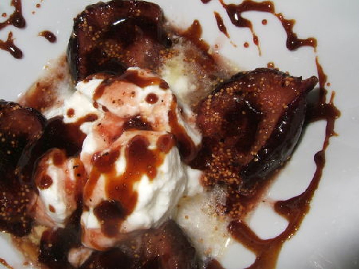 Faisselle de chèvre, figues rôties et caramel de balsamique votez maintenant Dessertfacile40 min539 Kcal Envoyer cette recette à un ami Imprimer cette page Poser une question à l'auteur Publier votre photo de cette recette Ingrédients 1 Faisselle (de chèvre) Figues fraîches Miel Beurre Poivre fraîchement moulu 50g de Vinaigre balsamique (ou condiment balsamique à la figue) 50g Sucre de canne blond