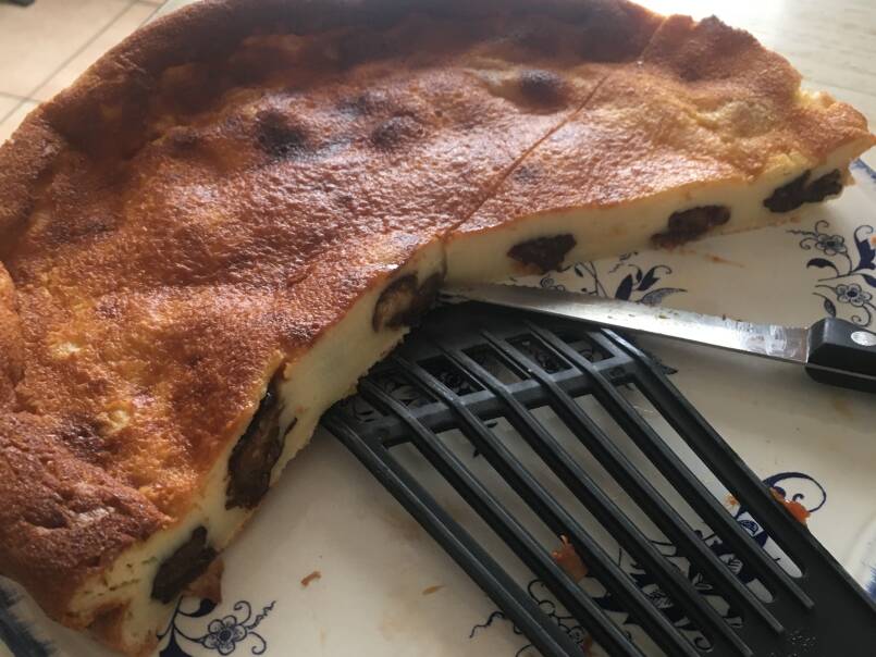 Le far aux pruneaux moelleux est un dessert traditionnel préparé avec une pâte à base d'œufs, farine, sucre, lait et beurre fondu, dans laquelle sont incorporés des pruneaux préalablement macérés au rhum. La cuisson au four à 180°C pendant 45 minutes permet d'obtenir une texture fondante et légèrement dorée. Ce dessert se déguste tiède ou froid, offrant un équilibre parfait entre la douceur des pruneaux et la richesse onctueuse de la pâte, relevé par une note subtile de rhum.