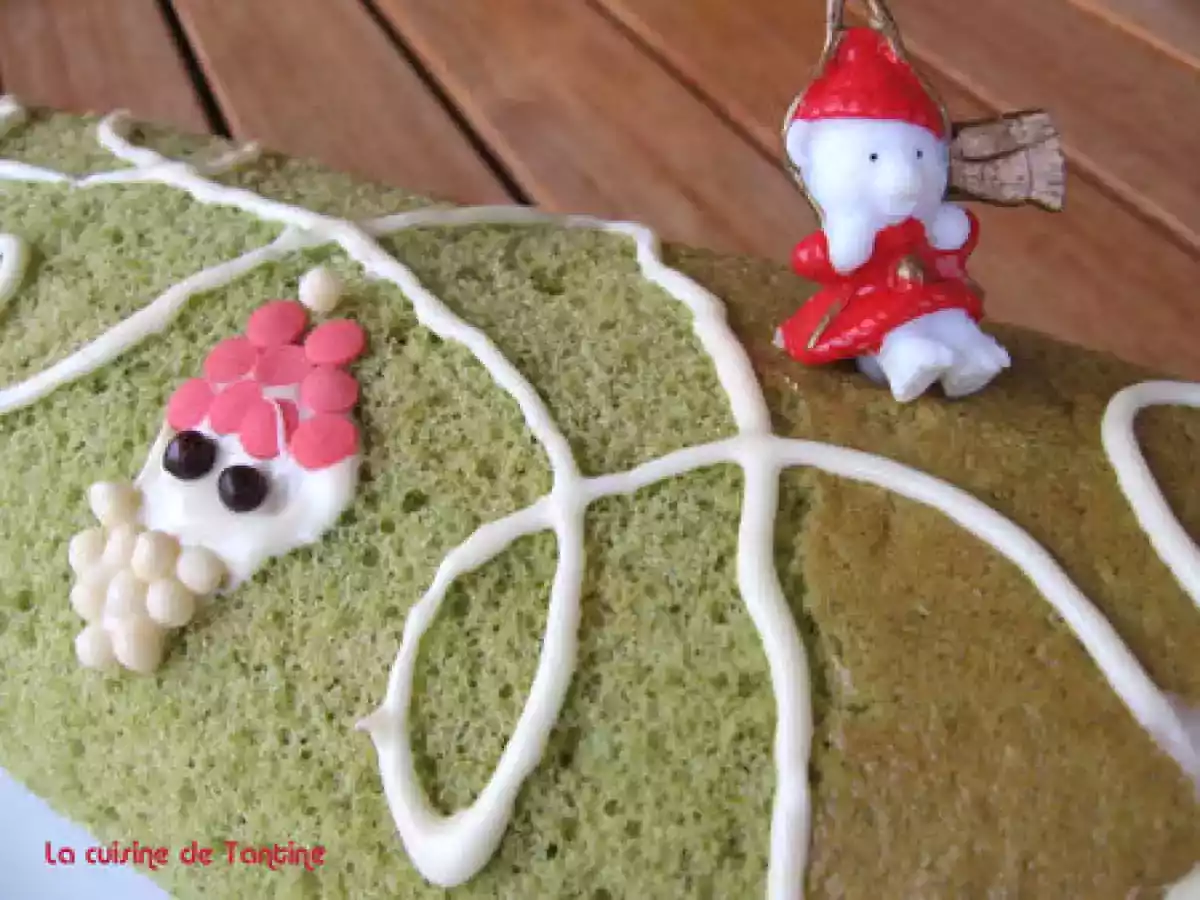 Fausse bûche : roulé au thé matcha et purée d'azukis votez maintenant PrécédentSuivant Dessertfacile30 min Envoyer cette recette à un ami Imprimer cette page Poser une question à l'auteur Publier votre photo de cette recette Ingrédients 4 Pour la purée d'azukis : 150 g de haricots azukis 1 gousse de vanille un morceau de gingembre de 2 cm le zeste d'un demi citron Pour le biscuit : 3 oeufs 90 g de sucre 75 g de farine 6 g de poudre de thé vert 2 cuillères à soupe de lait 300 g de purée d'azukis préparée 20 cl de crème fleurette