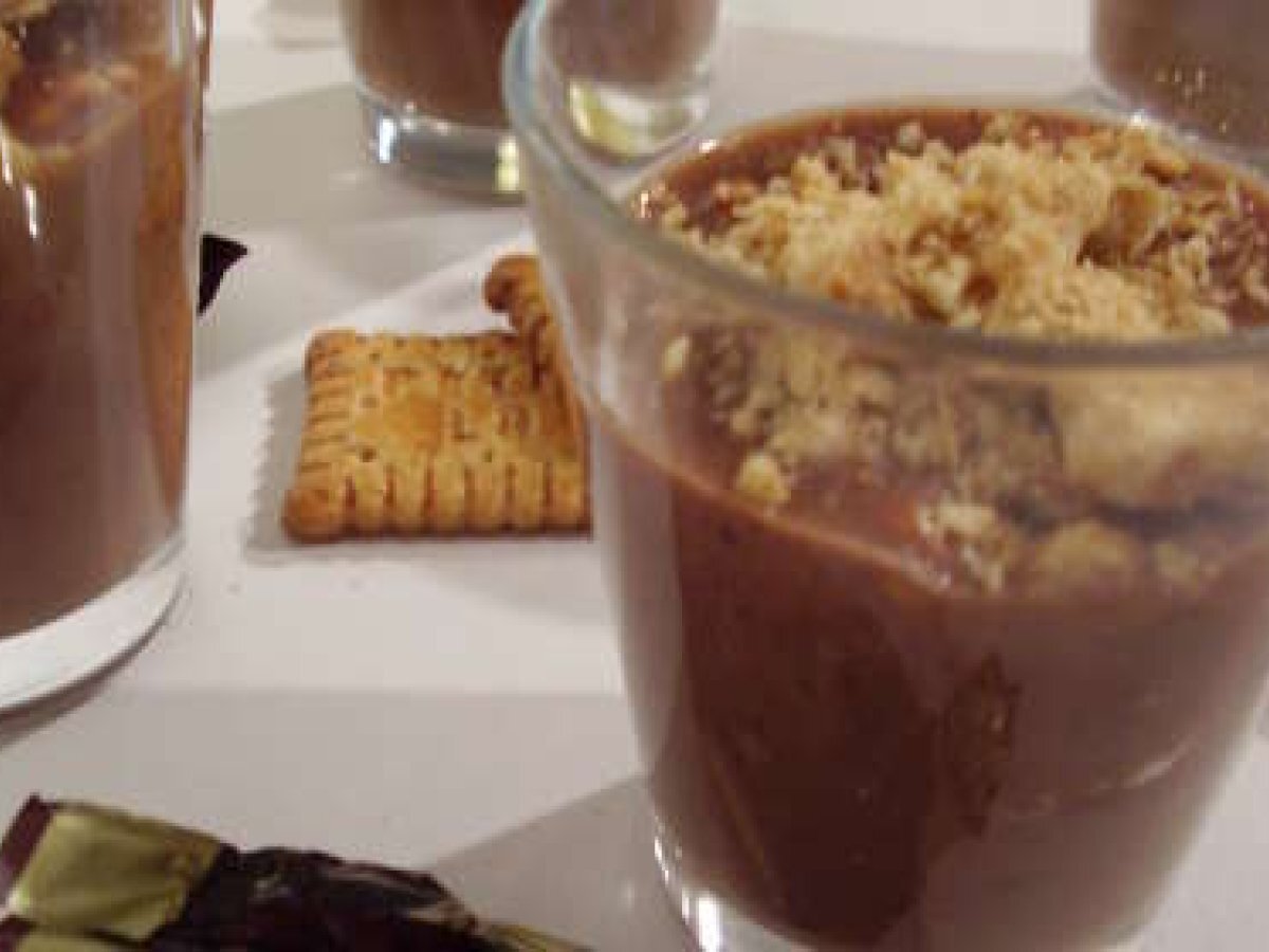 Ecraser grossièrement les biscuits.En répartir 1/3 au fond de quatre verrines.