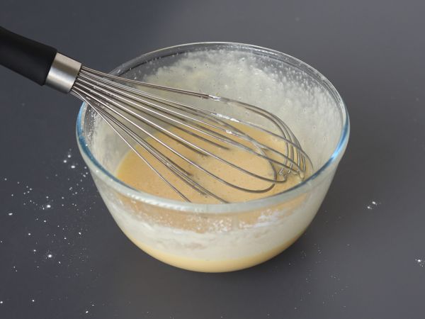 Mélanger les œufs, le sucre et la maïzena (vous pouvez l'ajouter en plusieurs fois) dans un grand bol.