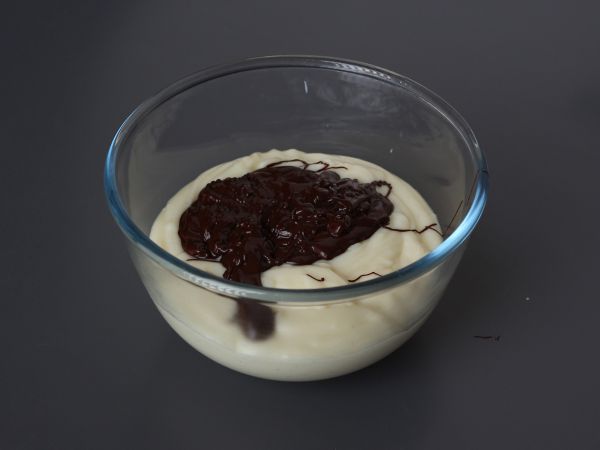 Ajouter le chocolat fondu dans l'une et bien mélanger.