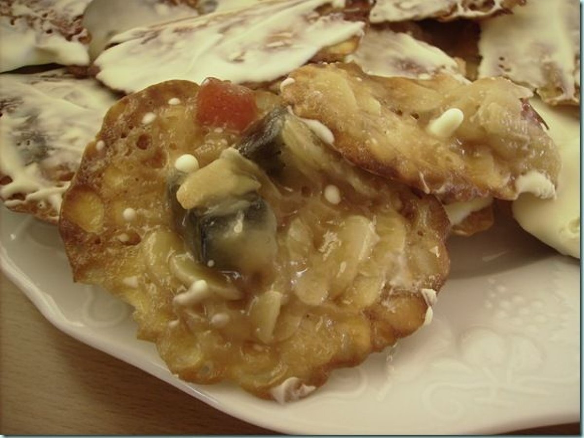 Florentins aux fruits confits et au chocolat Dessertfacile45 min Envoyer cette recette à un ami Imprimer cette page Poser une question à l'auteur Publier votre photo de cette recette Ingrédients 4 50 g de fruits confits 75 g d'amandes effilées 110 g de sucre en poudre 40 g de miel 110 g de crème fraîche 45 g de farine tamisée 1 cuillère à café d'extrait de vanille 150 g à 200 g de chocolat