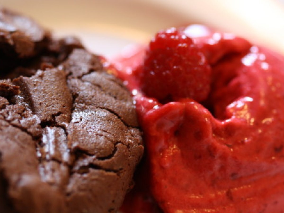 Fondant au chocolat et sorbet framboise Dessertfacile22 min739 Kcal Envoyer cette recette à un ami Imprimer cette page Poser une question à l'auteur Publier votre photo de cette recette Ingrédients 4 Pour les fondants : 200 g de chocolat 100 g de beurre 3 oeufs 50 g de sucre 1 cuillère à soupe de farine Pour le sorbet : 800 g de framboises surgelées 80 g de sucre 1 blanc d'oeuf Coût estimé: 13.08Euros€ (3.27€/part)
