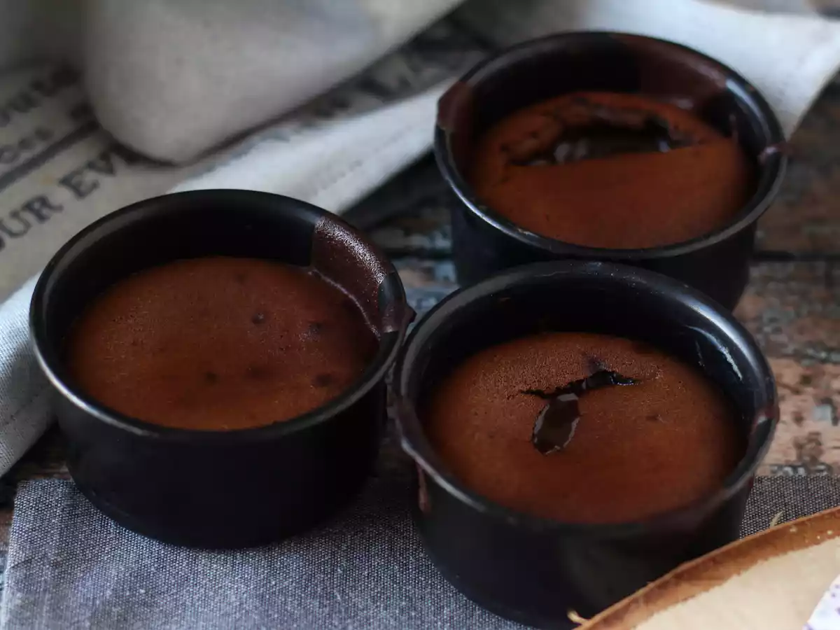 Placer les ramequins dans le air fryer réglé à 210°C. Faire cuire 6 à 7 minutes pour avoir un coeur bien coulant.