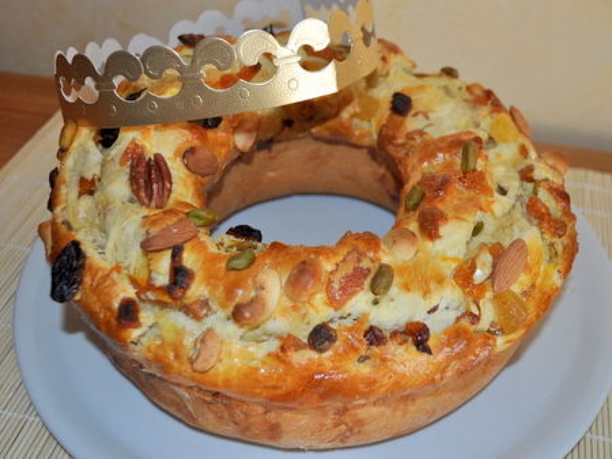 Galette des rois briochée aux fruits confit et fruits secs Dessertfacile37 min Envoyer cette recette à un ami Imprimer cette page Poser une question à l'auteur Publier votre photo de cette recette Ingrédients 6 500 g de farine 3 oeufs 100 g sucre en poudre 1/2 cuillère à café de sel 100 g de lait tiède 100 g de beurre 20 g de levure fraîche ou 1 sachet de levure de boulanger 50 g de Rhum (50 ml) 300 g de fruits confits mélangés (abricots, raisins) 75 g de fruits secs mélangés (noix, amandes, pistaches) 1 fève Pour la dorure : 1 oeuf