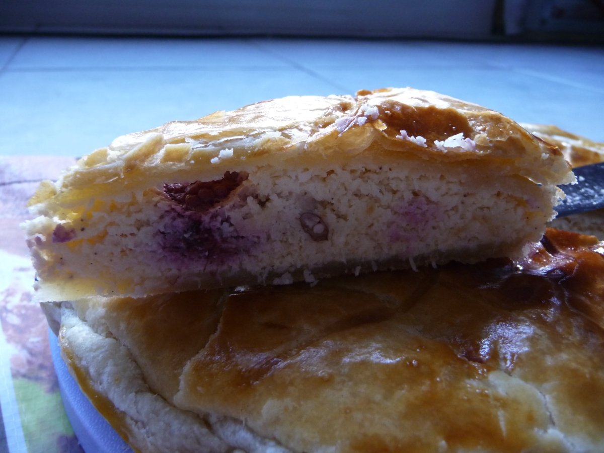Galette des rois noix de coco/framboises PrécédentSuivant Dessertfacile50 min Envoyer cette recette à un ami Imprimer cette page Poser une question à l'auteur Publier votre photo de cette recette Ingrédients 8 500 g de pâte feuilletée maison 3 oeufs 50 g de cassonnade 1 pincée de vanille en poudre 1 pincée de cannelle en poudre 100 g de mascarpone 100 g de crème liquide 125 g de noix de coco rapée 1 grosse poignée de framboises 1 amande en guise de fêve .