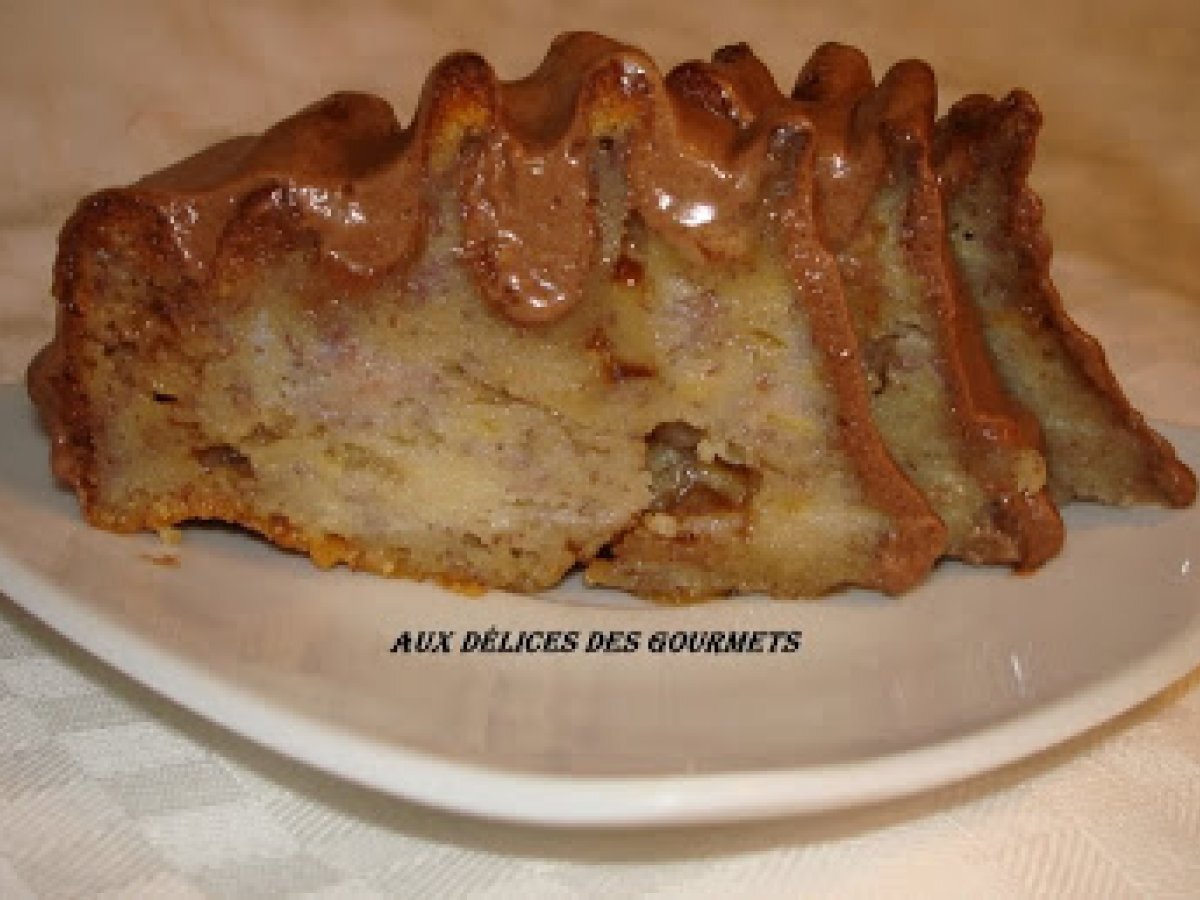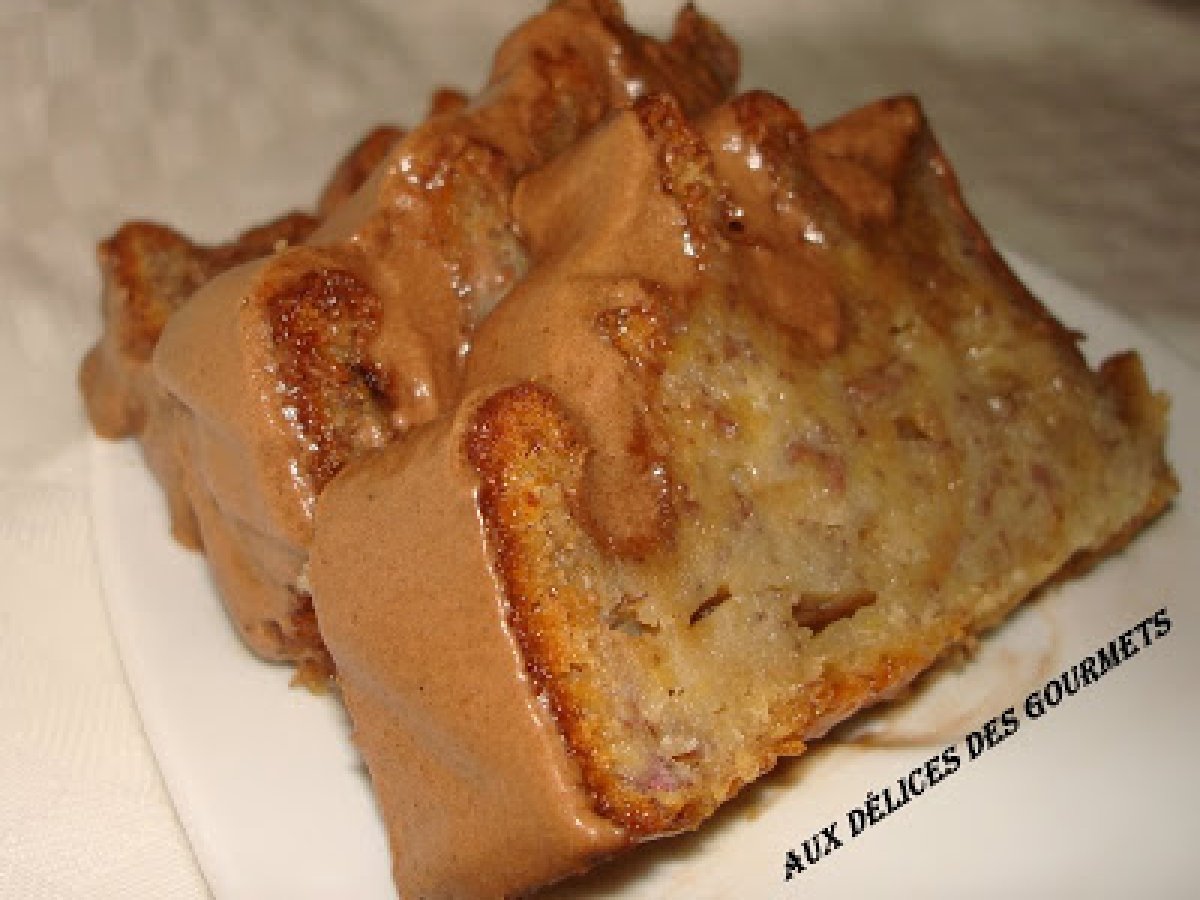 Gateau a la banane votez maintenant PrécédentSuivant Dessertfacile1 h 15 m Envoyer cette recette à un ami Imprimer cette page Poser une question à l'auteur Publier votre photo de cette recette Ingrédients 6 260 g de farine 1 cuillère à café de levure chimique 120 g de sucre 4 cuillères à soupe de miel 4 oeufs 5 cuillères à soupe d'huile 5 cuillères à soupe de lait 1 cuillère à café de vanille 1 pincée de sel 3 bananes bien mûres Sucre glace Pour le glaçage : 1 pincée de sel 1 cuillère à soupe de Nescafé (dilué avec un tout petit peu d'eau). 1 cuillère à soupe de cacao 4 cuillères à soupe de crème fraîche 150 g de sucre glace 1 blanc d’oeuf