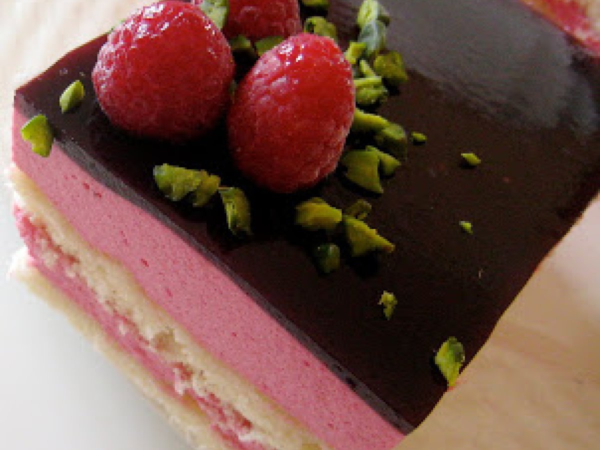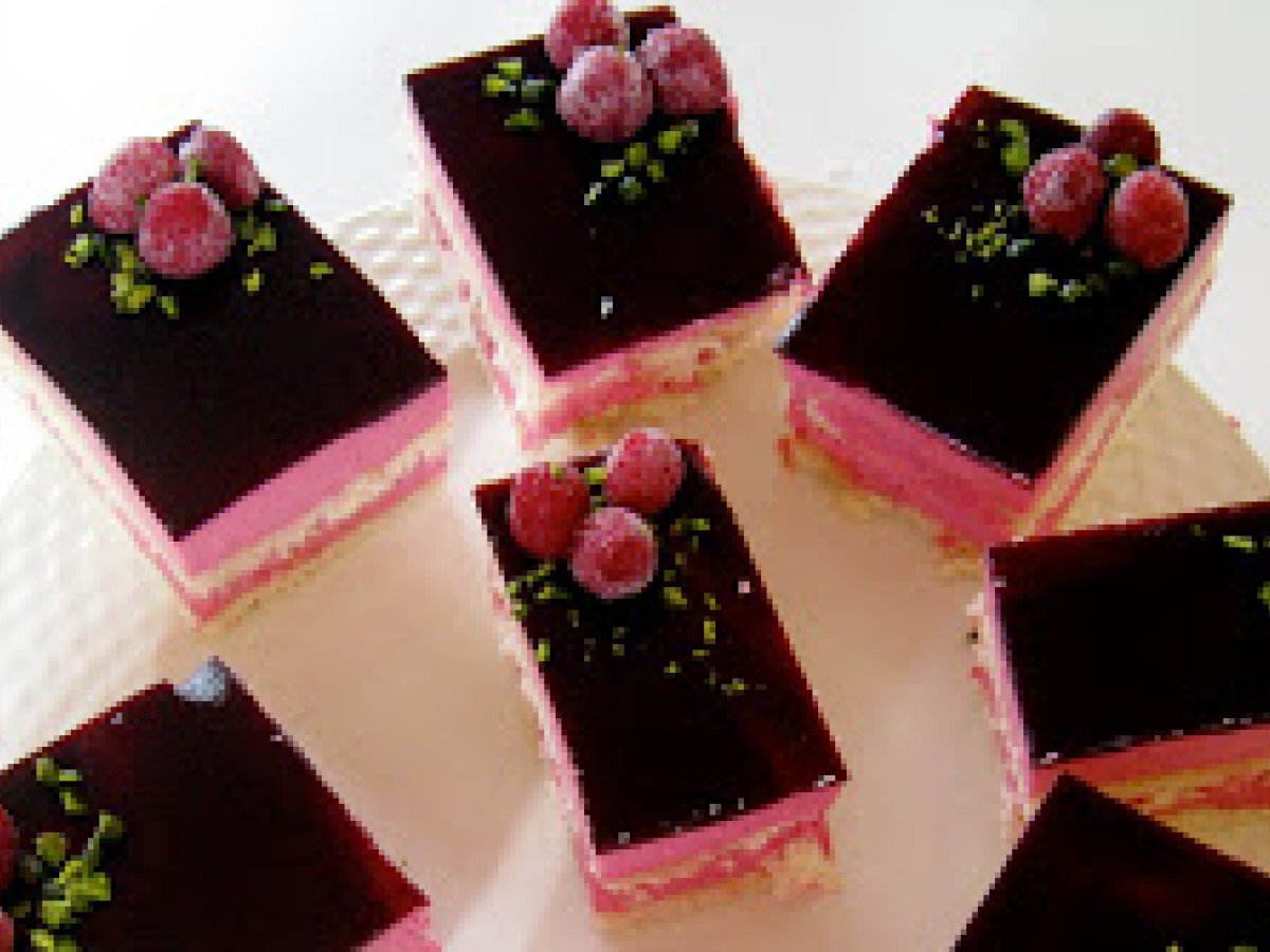 Gâteau à la mousse de framboises et glaçage à la mûre PrécédentSuivant Dessertfacile45 min516 Kcal Envoyer cette recette à un ami Imprimer cette page Poser une question à l'auteur Publier votre photo de cette recette Ingrédients 6 Pour le biscuit : 3 oeufs 100 g de sucre 80 g de farine 20 g de maïzéna 20 g de sucre glace Pour le sirop 80 g d'eau 90 g de sucre en poudre 1 cuillère à soupe de liqueur de framboise Pour la mousse de framboises : 300 g de purée de framboises 100 g de sucre 30 cl de crème liquide entière 4 feuilles de gélatine Pour le glaçage à la mûre : 180 g de coulis de mûres 2 feuilles de gélatine Coût estimé: 9.88Euros€ (1.65€/part)
