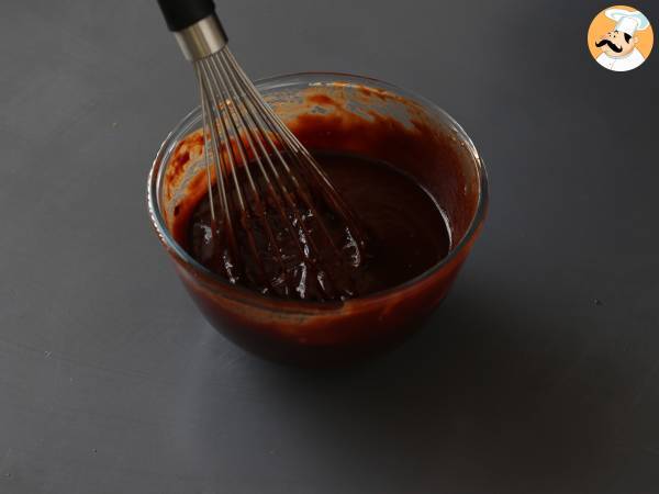 Mélanger les ingrédients à l'aide d'un fouet jusqu'à obtenir une pâte bien lisse et brillante.