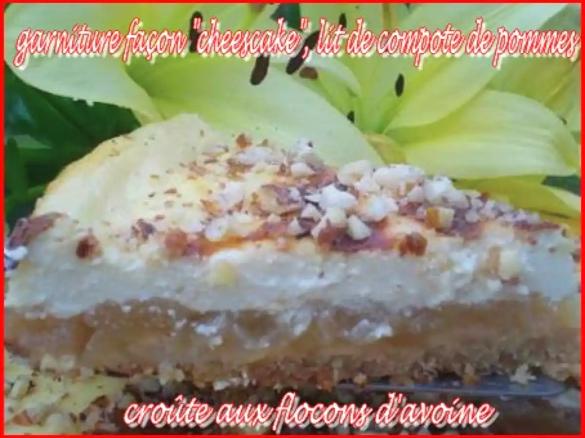 Un délicieux gâteau qui ressemble à un cheesecake sur une croûte aux flocons d'avoine. Mmm !