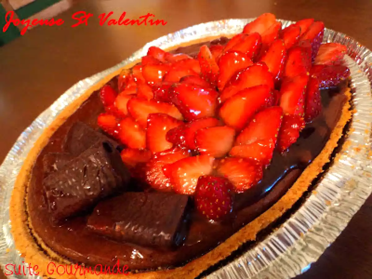 Gâteau au fromage choco fraises de la st valentin votez maintenant PrécédentSuivant Dessertfacile1 h 10 m Envoyer cette recette à un ami Imprimer cette page Poser une question à l'auteur Publier votre photo de cette recette Ingrédients 4 1 crôute à tarte graham du commerce nature ou aux biscuits Oreo (peut être remplacé par un croûte à tarte sablée dont vous trouverez la recette ici) 2 paquets de 250 g chacun de fromage à la crème Philiadelphia Light (44% moins de gras) ½ tasse (125 ml) de sucre 1 cuillère à thé d?essence de vanille 2 oeufs à température de la pièce 1 tasse (250 ml) de pépites de chocolat noir fondu et refroidi 1 tasse (250 ml) de fraises lavées et tranchées Nutella 2 cuillères à soupe de confiture de fraises Gavottes au chocolat (facultatif)