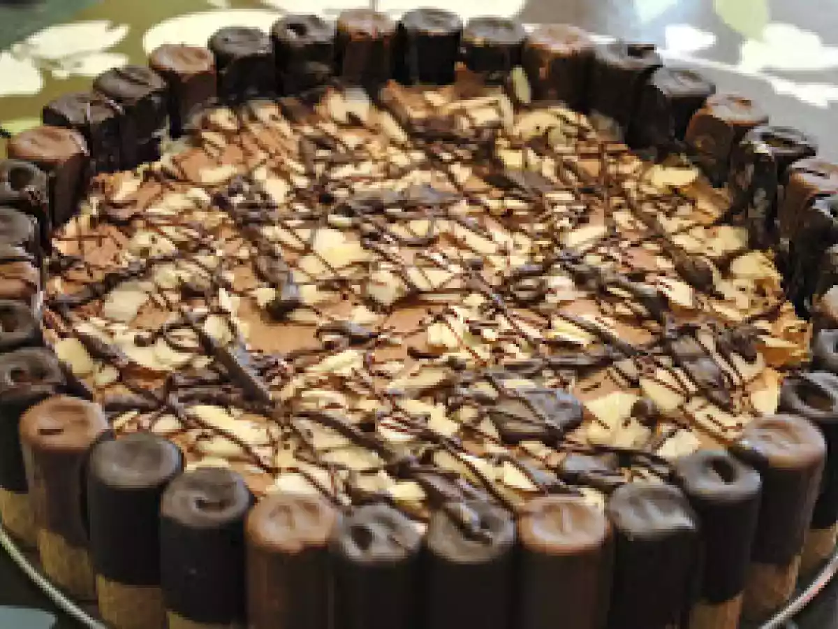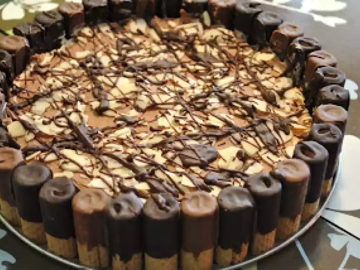 Gâteau au fromage chocolat et amaretto PrécédentSuivant Dessertfacile30 min Envoyer cette recette à un ami Imprimer cette page Poser une question à l'auteur Publier votre photo de cette recette Ingrédients 6 32 gaufrettes au chocolat Bahlsen 500 g de fromage à la crème ramolli ¾ tasse de cassonade bien tassée 1 sachet de 7 g de gélatine sans saveur ½ tasse de liqueur d'amande 1 tasse de crème à fouetter, fouettée 6 carrés de chocolat mi-sucré