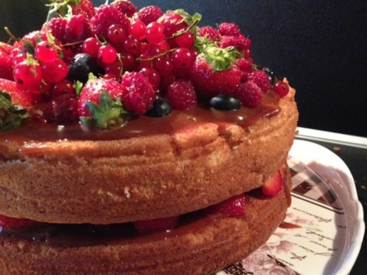 Gâteau aux fruits rouges et caramel PrécédentSuivant Dessertfacile30 min Envoyer cette recette à un ami Imprimer cette page Poser une question à l'auteur Publier votre photo de cette recette Un gâteau terriblement gourmand ! Ingrédients 6 pour 6 personnes : pour la génoise (pour un moule de 20cm de diamètre) 4 oeufs 120g de sucre en poudre 120g de farine tamisée 1 gousse de vanille pour le caramel au beurre salé ma recette se trouve sur mon blog. 600g de fruits rouges frais (groseilles, framboises, fraises, myrtilles…) 1 citron vert bio 4 cas de sucre glace