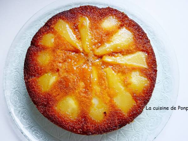 Gâteau aux poires caramélisées parfumées à la liqueur