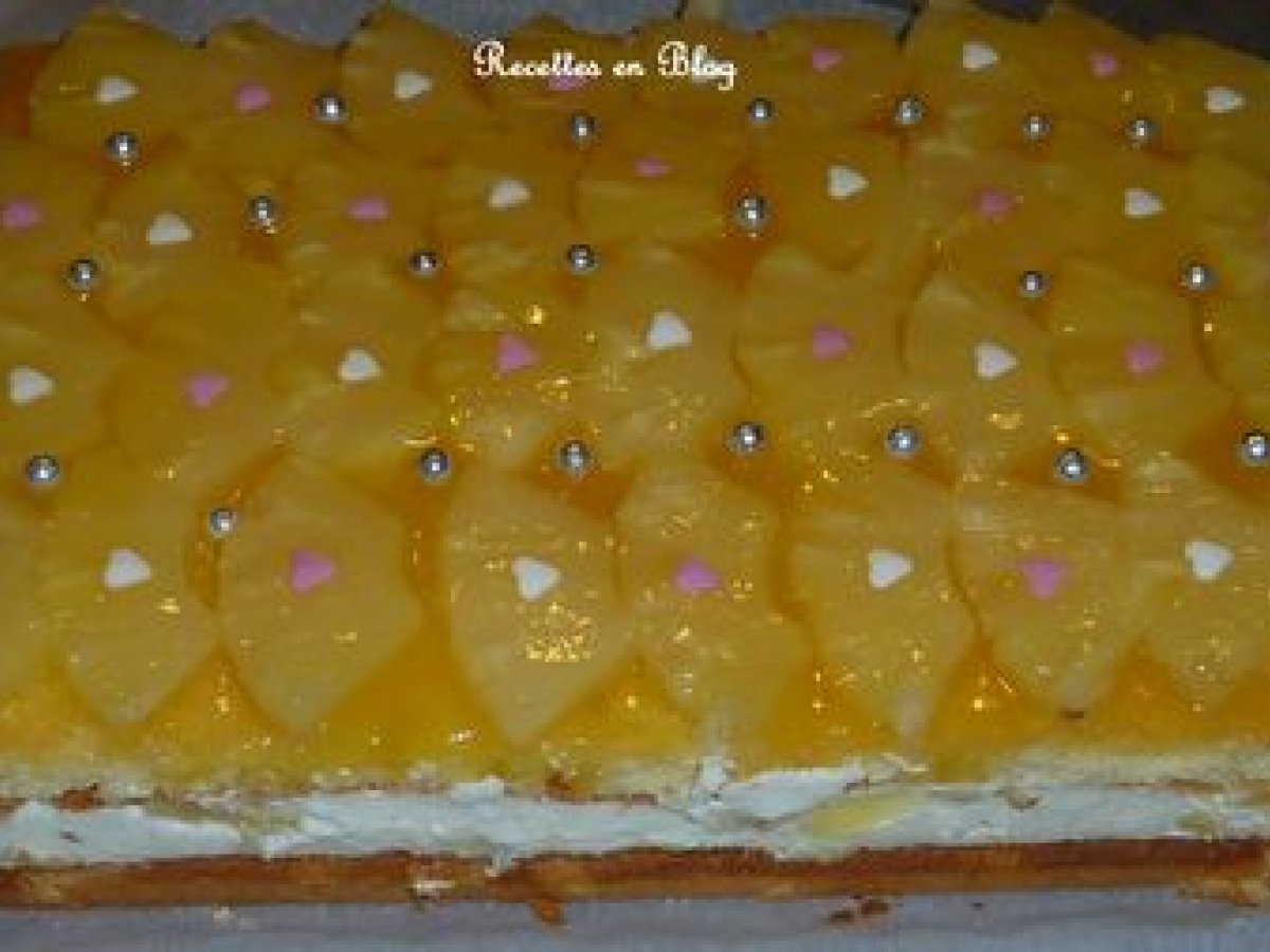 Gateau bavarois a l'ananas pour mon anniversaire PrécédentSuivant Dessertfacile50 min Envoyer cette recette à un ami Imprimer cette page Poser une question à l'auteur Publier votre photo de cette recette Ingrédients 6 Pour le bavarois : 1 petite boîte d'ananas en tranches 50 cl de crème fraîche épaisse à 30% de MG 4 feuilles de gélatine 100 g de sucre en poudre 3 cuillères à soupe de rhum 1 gousse de vanille 2 cuillères à soupe d'eau Pour le biscuit à la cuiller : 3 oeufs 80 g de farine 20 g de maïzena 100 g de sucre en poudre Pour la décoration : 1 petite boîte d'ananas en tranche 1 feuille de gélatine