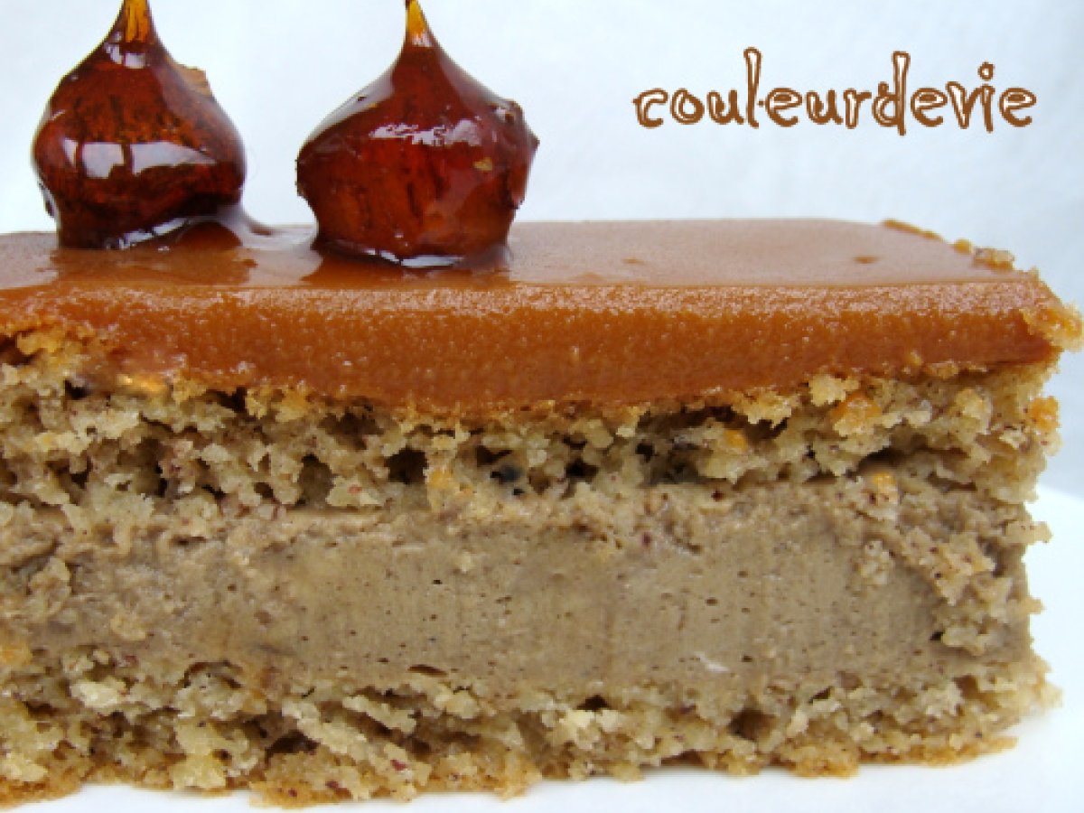 Gâteau café-noisettes-caramel PrécédentSuivant Dessertmoyen55 min Envoyer cette recette à un ami Imprimer cette page Poser une question à l'auteur Publier votre photo de cette recette Ingrédients 8 1/ Pour le biscuit 125 g de farine 125 g de poudre de noisettes 125 g de sucre 150 g de beurre fondu et refroidi 3 oeufs 1 sachet de levure chimique 1 cuillère à café d’extrait de café 2/ Pour la crème 40 cl de lait 20 g de café moulu 4 jaunes d’oeufs 90 g de sucre en poudre 10 cl de crème fleurette bien froide 6 g de gélatine en feuilles 3/ Pour le glaçage 2 g de gélatine en feuille 100 g de sucre en poudre 5 cl d’eau 50 g de beurre 10 cl de crème fraîche liquide 1/2 cuillère à café d’extrait de café Pour la déco quelques noisettes caramélisées
