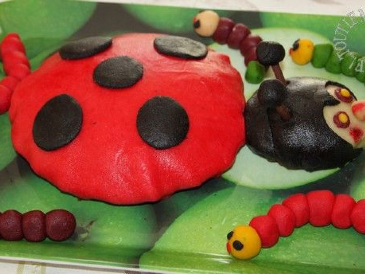 Gâteau coccinelle : un gâteau rigolo pour un anniversaire PrécédentSuivant Dessertmoyen37 min Envoyer cette recette à un ami Imprimer cette page Poser une question à l'auteur Publier votre photo de cette recette Ingrédients 3 Pour le biscuit : 150 g de sucre 120 g de beurre 3 oeufs 180 g de chocolat noir à pâtisser 65 % de cacao 75 g de farine Pâte d'amande : 160 g de poudre d'amandes 160 g de sucre glace 1 blanc d'oeuf 1 goutte d'essence d'amande amer colorants rouge fraise, noir et jaune