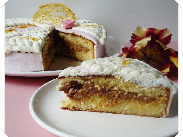 Gâteau d'anniversaire fourré à la confiture de lait et aux noix PrécédentSuivant Dessertmoyen1 heure Envoyer cette recette à un ami Imprimer cette page Poser une question à l'auteur Publier votre photo de cette recette Un trés beau et bon gâteau. Ingrédients 8 pour le gâteau 4 oeufs 1 tasse (200 ml) de lait chaud 2 tasses (200 ml) de farine de blé 2 tasses (200 ml) de sucre 1 c. à s. de beurre doux 1 c. à c. de vanille liquide 1 pincée de sel 1 sachet de levure sirop 400 ml d'eau 200 g de sucre garniture 1 pot de 250g de la confiture de lait au chocolat Raffolait 200 ml de crème liquide 1 c. à s. de beurre doux 150 g de noix concassées décoration 250 g de pâte à sucre rose La Récré C'est Party chantilly 200 ml de crème liquide froide 3 c. à s. de sucre 1 sachet de chantibio Greenweez et du caramel