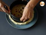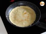 Choisissez une poêle à crêpes sans bords, vous pourrez plus facilement retourner vos crêpes à l'aide d'une spatule. Pour faire ce gâteau de crêpes, nous vous recommandons d'utiliser une petite poêle pour faire un maximum de crêpes et obtenir un gâteau plus haut. Placez le cercle dans la poêle, les diamètres doivent correspondre.