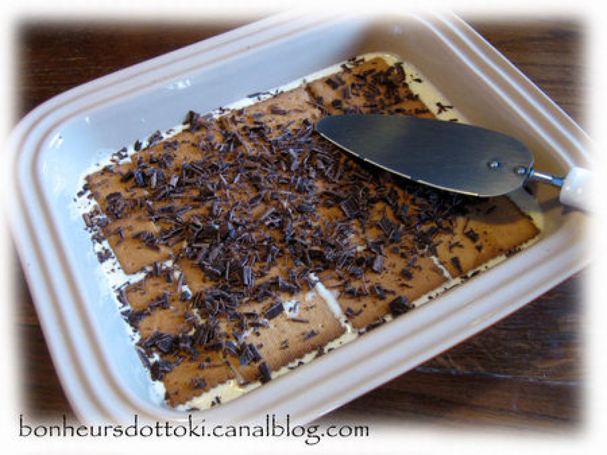 Gâteau de famille sans cuisson Dessertfacile10 min389 Kcal Envoyer cette recette à un ami Imprimer cette page Poser une question à l'auteur Publier votre photo de cette recette Ingrédients 6 120 g de mascarpone 60 g de sucre 2 oeufs 48 biscuits Thé de Lu 20 cl de café très fort 50 g de chocolat râpé Coût estimé: 3.54Euros€ (0.59€/part)