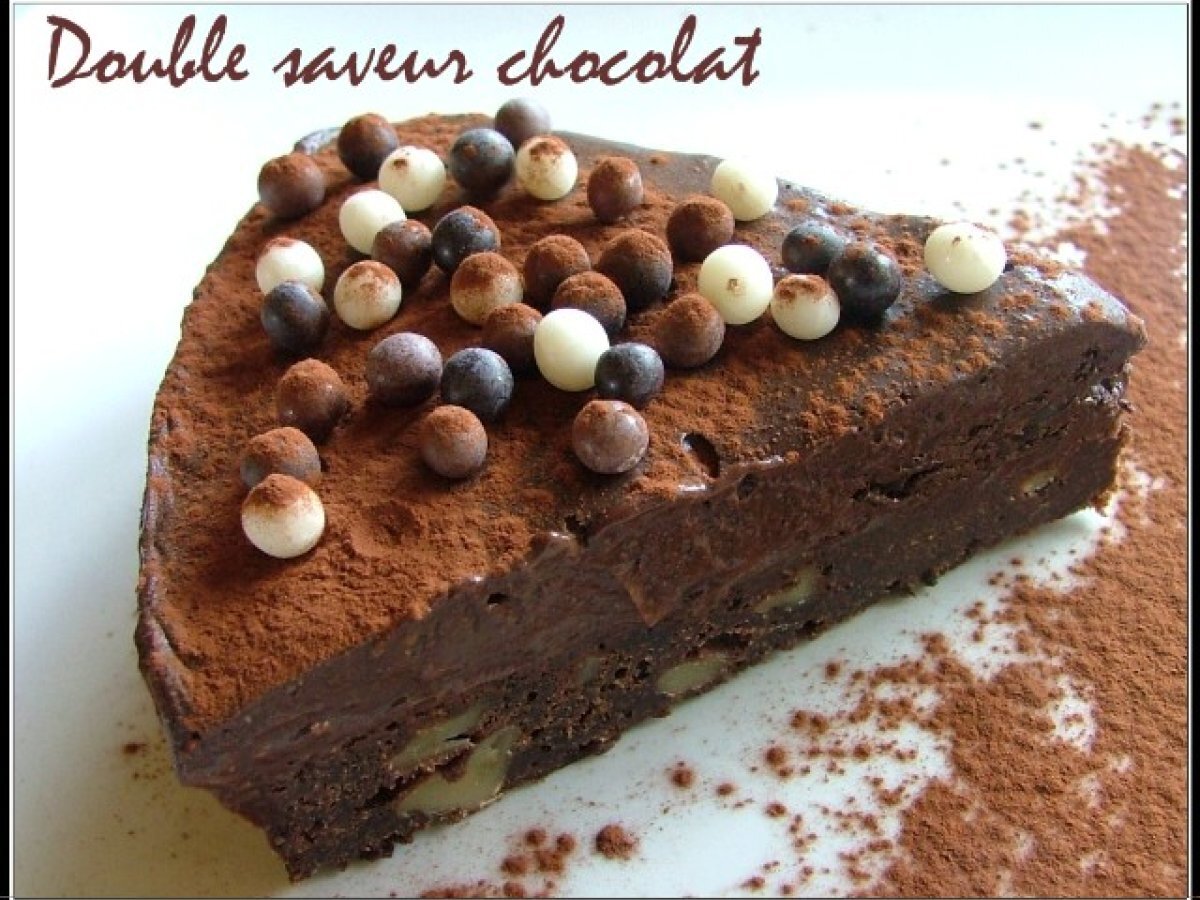 Gâteau double saveur chocolat, un délice de p.hermé PrécédentSuivant Dessertfacile42 min Envoyer cette recette à un ami Imprimer cette page Poser une question à l'auteur Publier votre photo de cette recette Ingrédients 6 115 g de beurre 195 g de chocolat noir 70% de cacao 2 oeufs 2 jaunes d'oeufs 150 g de sucre en poudre 60 g de farine 100 g de cerneaux de noix 160 ml de lait 160 ml de crème liquide 1 feuille de gélatine 1 cuillère à soupe de cacao amer non sucré boules chocolat (facultatif)