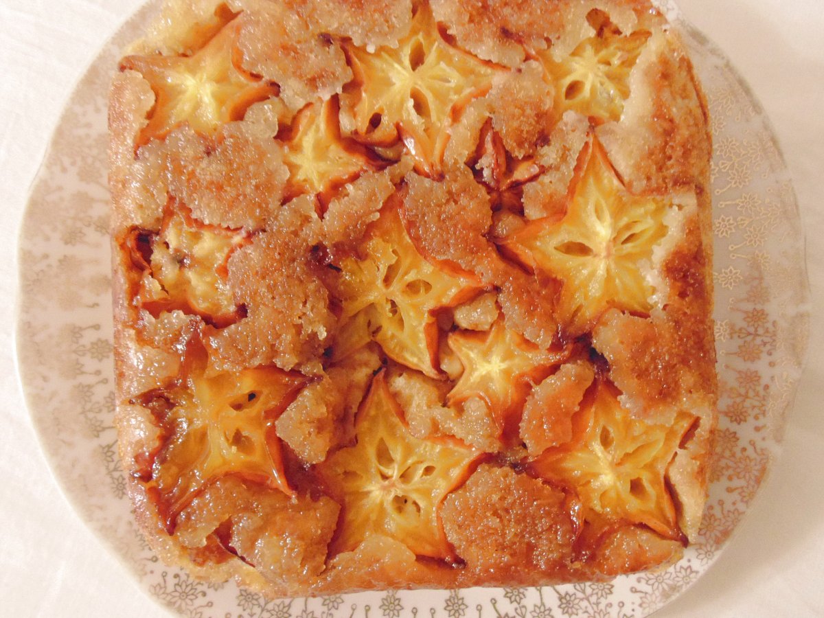 C'est un gâteau exotique très moelleux et si joli avec ses tranches de caramboles acidulées.
