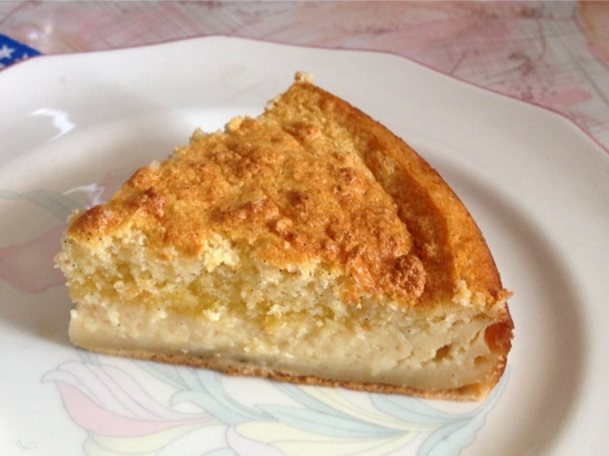 Ce gâteau a la particularité de donner 3 couches (le fond, une partie crémeuse qui ressemble à du flan, et une partie comme un gâteau moelleux au-dessus), le tout avec une seule pâte. D’où le fait que ce gâteau soit aussi appelé « gâteau magique » : on prépara la pâte, on verse dans le moule, et la cuisson fait le reste.