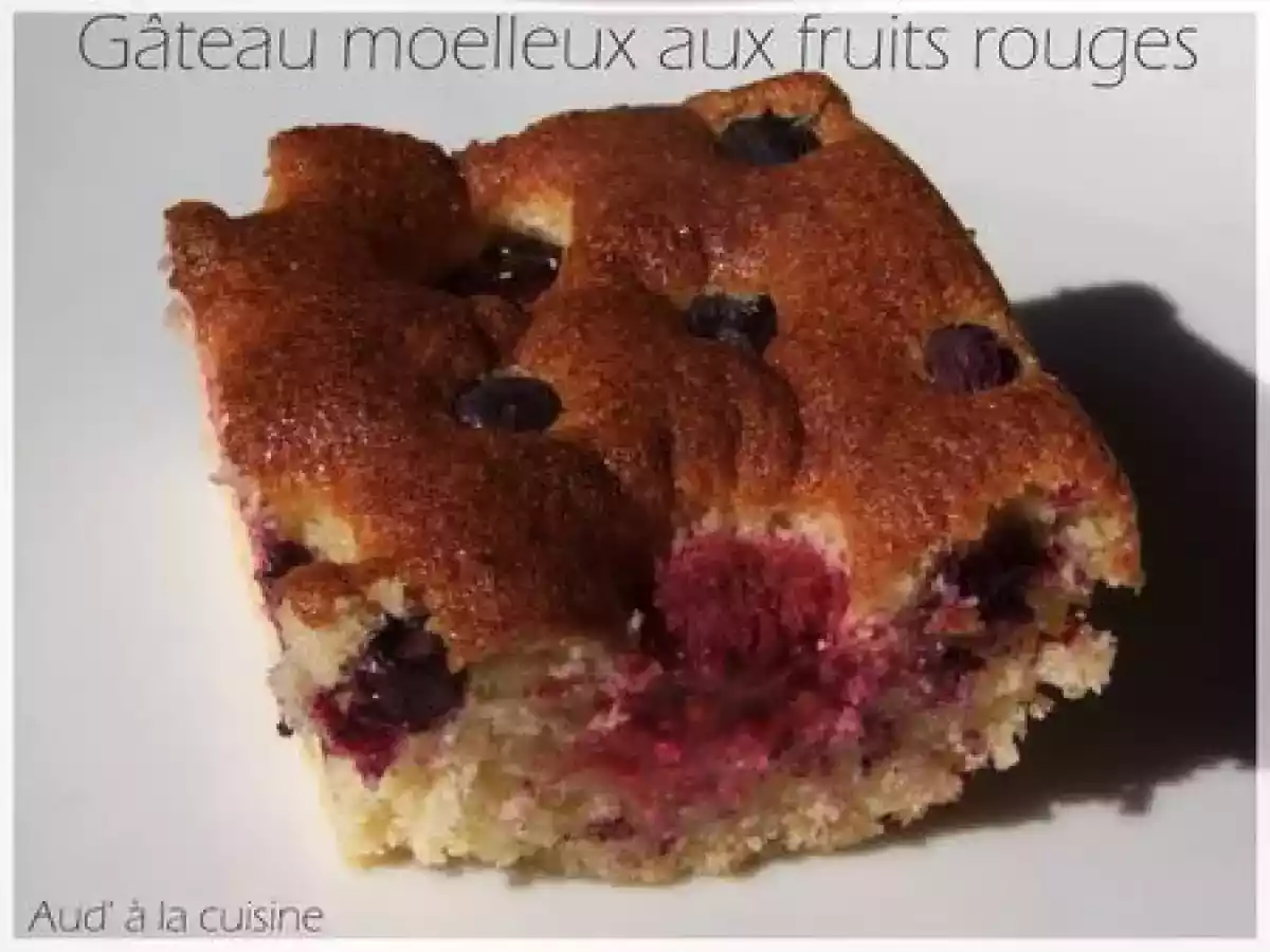 Gâteau moelleux aux fruits rouges Dessertfacile37 min312 Kcal Envoyer cette recette à un ami Imprimer cette page Poser une question à l'auteur Publier votre photo de cette recette Ingrédients 4 3 oeufs 40 g de farine 60 g de poudre d'amande 80 g de sucre roux 1 sachet de sucre vanillé 60 g de compote de pomme 1 cuillère à café de levure chimique 150 g de fruits rouge (myrtilles, framboises, mûres) Coût estimé: 3.25Euros€ (0.81€/part)