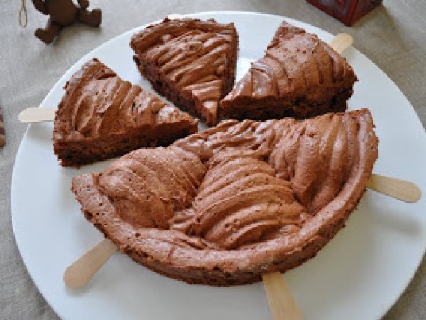 Gâteau-mousse au chocolat noir, poires et marrons confits en version de fêtes votez maintenant PrécédentSuivant Dessertfacile30 min Envoyer cette recette à un ami Imprimer cette page Poser une question à l'auteur Publier votre photo de cette recette Ingrédients 8 4 poires plus 200 g de chocolat noir 80 g de sucre 6 oeufs gousse de vanille 1/4 fève tonka 125 g de beurre 50 g de pralin en poudre 25 g de noix concassées finement 60 g minimum de marrons confits ou glacés sucres décoratifs à motifs de fêtes bâtonnets de bois pour esquimau glacé