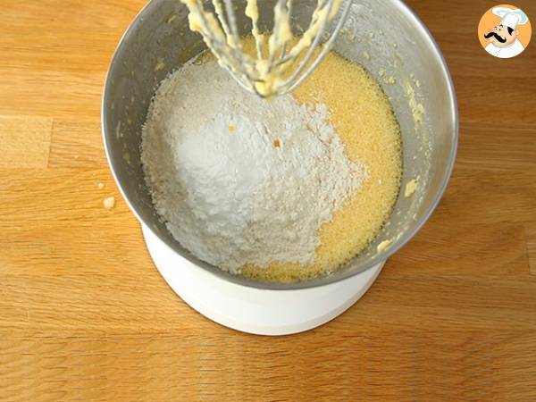 Ajoutez ensuite la farine et la levure, et mélangez bien.