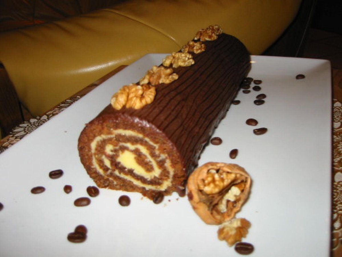 Gâteau roulé au café et aux noix, crème au beurre Dessertfacile40 min Envoyer cette recette à un ami Imprimer cette page Poser une question à l'auteur Publier votre photo de cette recette Ingrédients 4 La génoise : 75 g de farine 75 g de sucre 50 g de noix haché 3 oeufs entiers 8 g de levure chimique 1 cuillère à soupe de nescafé Pour la crème au beurre : 100 g de sucre 2 jaunes d'oeufs 100 g de beurre mou 5 cl d'eau froide Pour la ganache au chocolat : 400 g de chocolat au lait 200 g de la crème fraîche 20 g de beurre 1 trait d'arôme café La décoration : Quelques cerneaux de noix