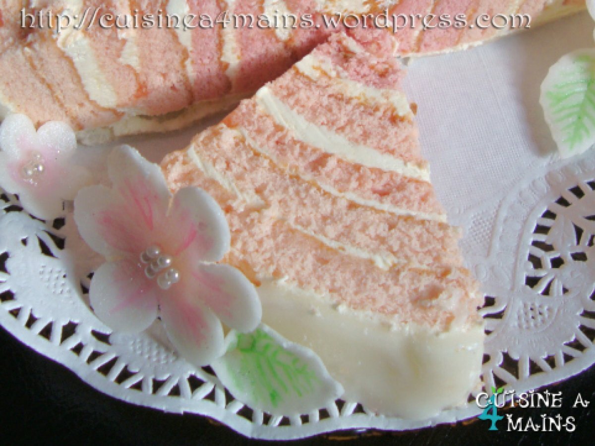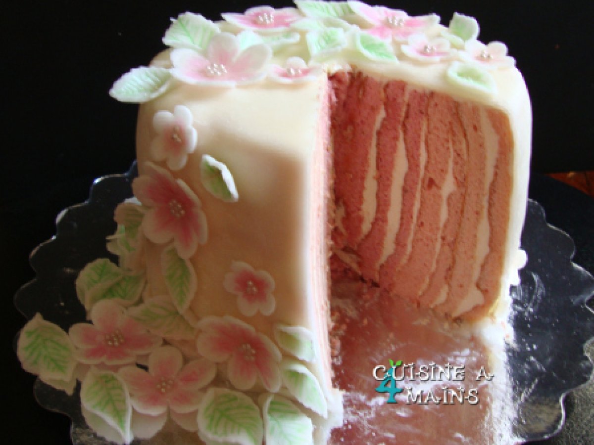 Gâteau sakura PrécédentSuivant Dessertfacile30 min Envoyer cette recette à un ami Imprimer cette page Poser une question à l'auteur Publier votre photo de cette recette Ingrédients 4 Pour la génoise 4 oeufs 80 g de sucre 40 g de farine + 20 g de fécule de maïs+20 g de poudre d'amandes 1/2 cuillère à café de levure chimique Vanille, colorant alimentaire rose Pour la crème au beurre 2 blancs d'oeufs 150 g de sucre Vanille 250 g de beurre ramolli Décoration : Pâte de sucre blanc d’oeuf colorants alimentaires perles alimentaires nacré brillant