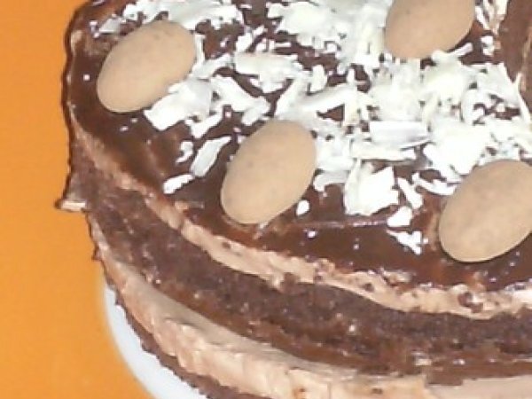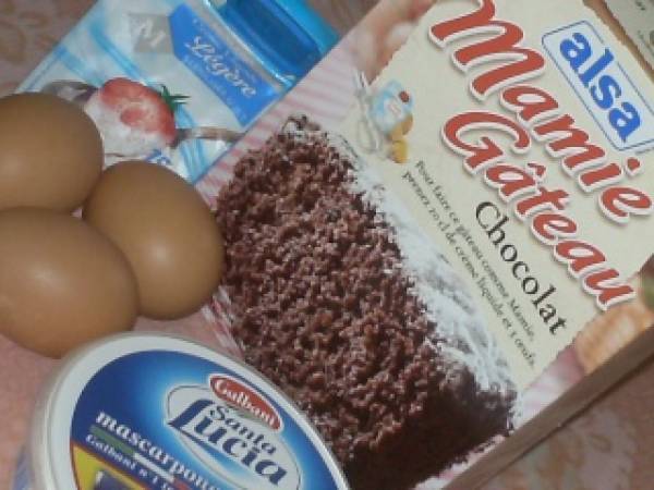 Gâteau tiramisu au chocolat" sans oeufs " + étapes PrécédentSuivant Dessertmoyen6 h 30 m Envoyer cette recette à un ami Imprimer cette page Poser une question à l'auteur Publier votre photo de cette recette Ce gâteau tiramisu est un délice! Rien qu'un délice... Ingrédients 8 1 préparation mamie gâteau au chocolat 3 oeufs 20 cl de crème liquide à ajouter à la préparation ou une génoise ou gâteau moelleux au chocolat de votre choix ou nature si vous préférez 250 g à 300 g de mascarpone 4 petits pots de crème dessert au chocolat ( nesquick ) le pot doit faire environ 50 g à 60 g ou les crèmes genres danettes café léger ou fort pour imbiber cacao ou choc poudre pr la déco amandinas ( petits bonbons chocolat au lait fourré d'une amande torréfiée et enrobé de cacao ) pour déco ou autre + copeaux chocolat blanc