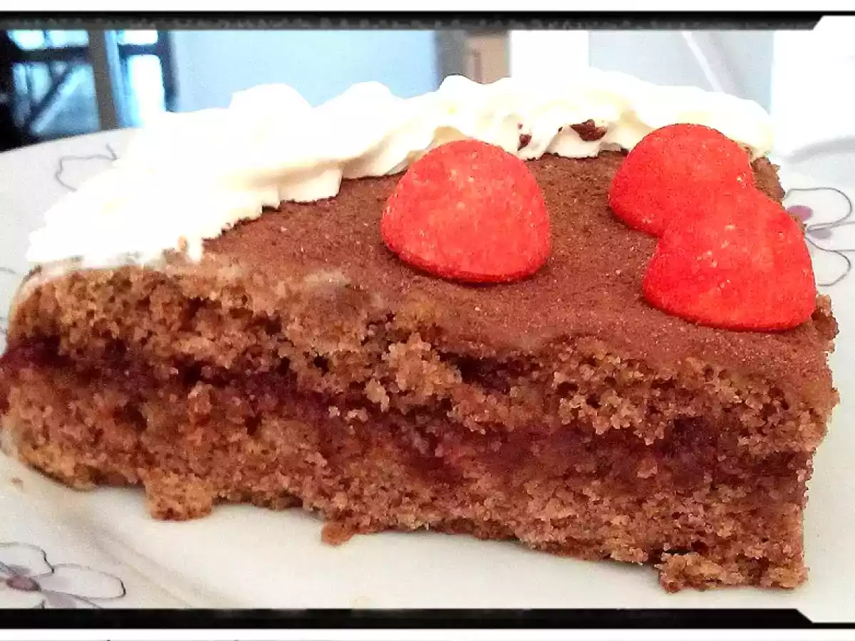 Génoise sans oeufs au sarrasin fourrée à la fraise et sa ganache chocolat blanc-cacao