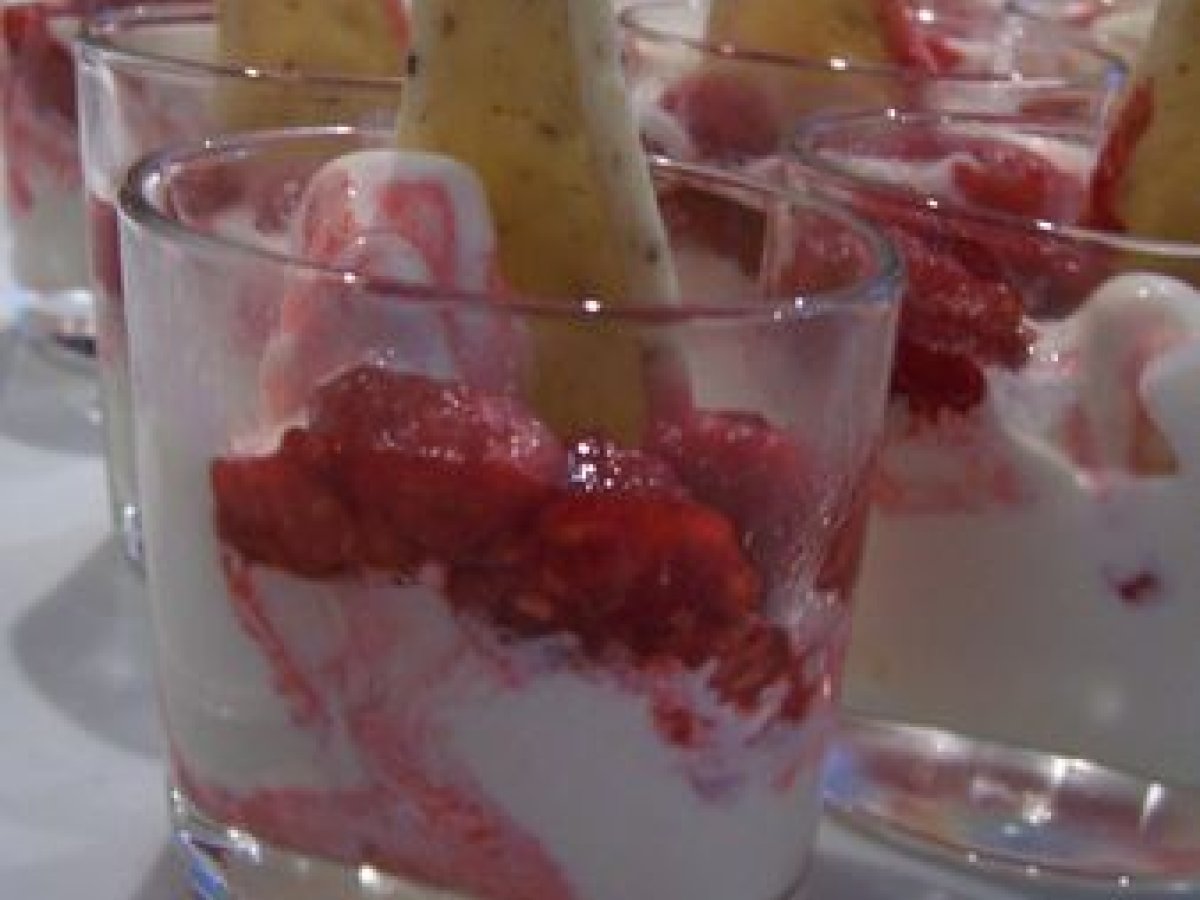 Un dessert délicieux présenté en verrines avec des cuillères en pâte sablée... Un régale pour les yeux et le palais !!