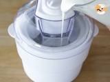 [Si vous n'avez pas de sorbetière, pas d'inquiétude ! Placer la crème au congélateur durant 2 heures, tout en remuant à l'aide d'un fouet électrique toutes les 30 minutes. ]
