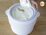 Pour ceux qui ont une sorbetière, l'allumer et y verser la crème petit à petit
