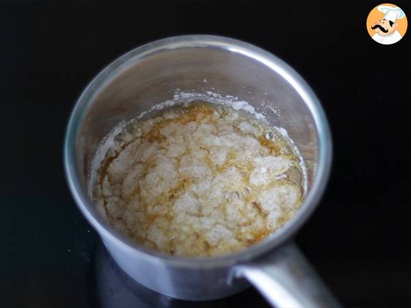 Laisser la crème et les îlots refroidir. Au dernier moment, préparer le caramel, en mettant le sucre dans une casserole avec un peu d'eau. Mettre sur feu moyen, et attendre que le caramel se forme.
