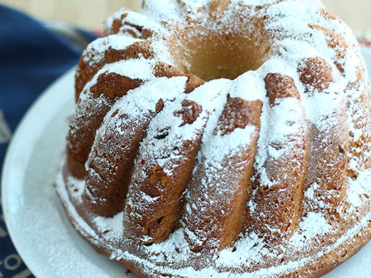 Saupoudrer de sucre glace pour un kougelhof d'aspect traditionnel.
