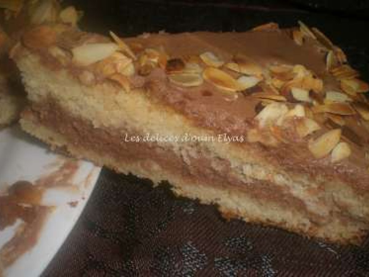 Déposer la première partie sur le plat de service puis couvrir de crème Nutella/café.