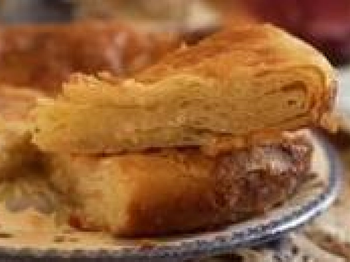 pour obtenir une pate feuilletée - Replier en triangle, mettre dans le moule, laisser lever une deuxième fois, puis cuire à four moyen thermostat 7 (180 C), environ 25 minutes.