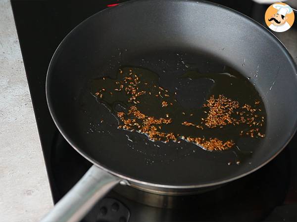 Faire chauffer de l'huile d'olive dans une poêle, et y faire revenir l'anis vert quelques minutes.