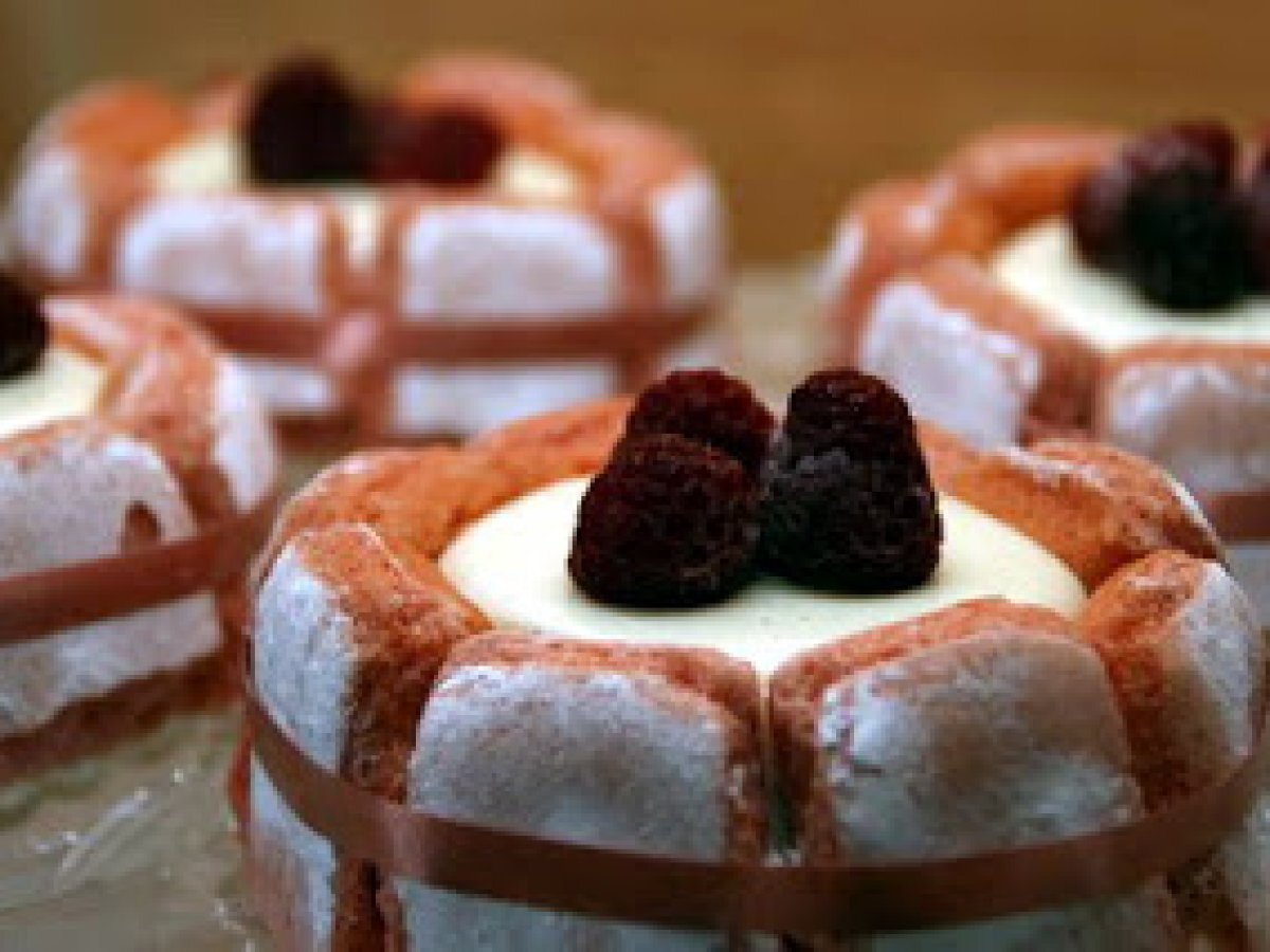 Little pink charlottes à la panacotta et aux biscuits roses de reims