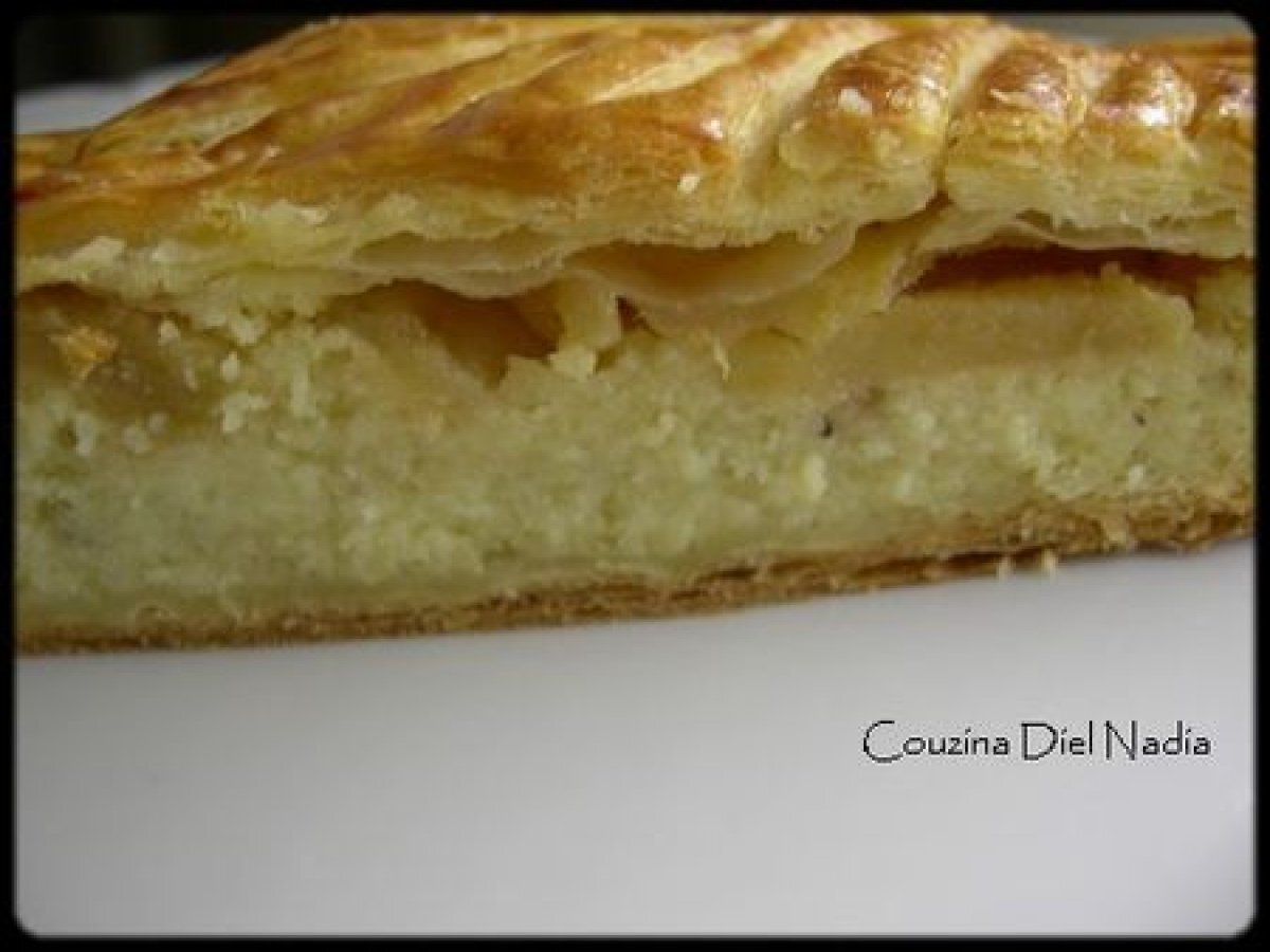 Ma galette des rois aux pommes caramelisees et a la feve de tonka votez maintenant PrécédentSuivant Dessertfacile50 min1173 Kcal Envoyer cette recette à un ami Imprimer cette page Poser une question à l'auteur Publier votre photo de cette recette Ingrédients 4 La Galette des Rois 2 rouleaux de pâte feuilletée : une de 24 cm et l'autre de 26 cm 100 g de poudre d'amandes 2 oeufs 50 g de beurre pommade ramolli 100 g de sucre quelques gouttes d'essence d'amandes amère de la crème pâtissière froide (pas trop sucré) 1 oeuf entier avec une pincée de sel pour la dorure 1 cuillère à soupe de sucre glace 1 cuillère à soupe d'eau pour le glaçage Coût estimé: 6.32Euros€ (1.58€/part)