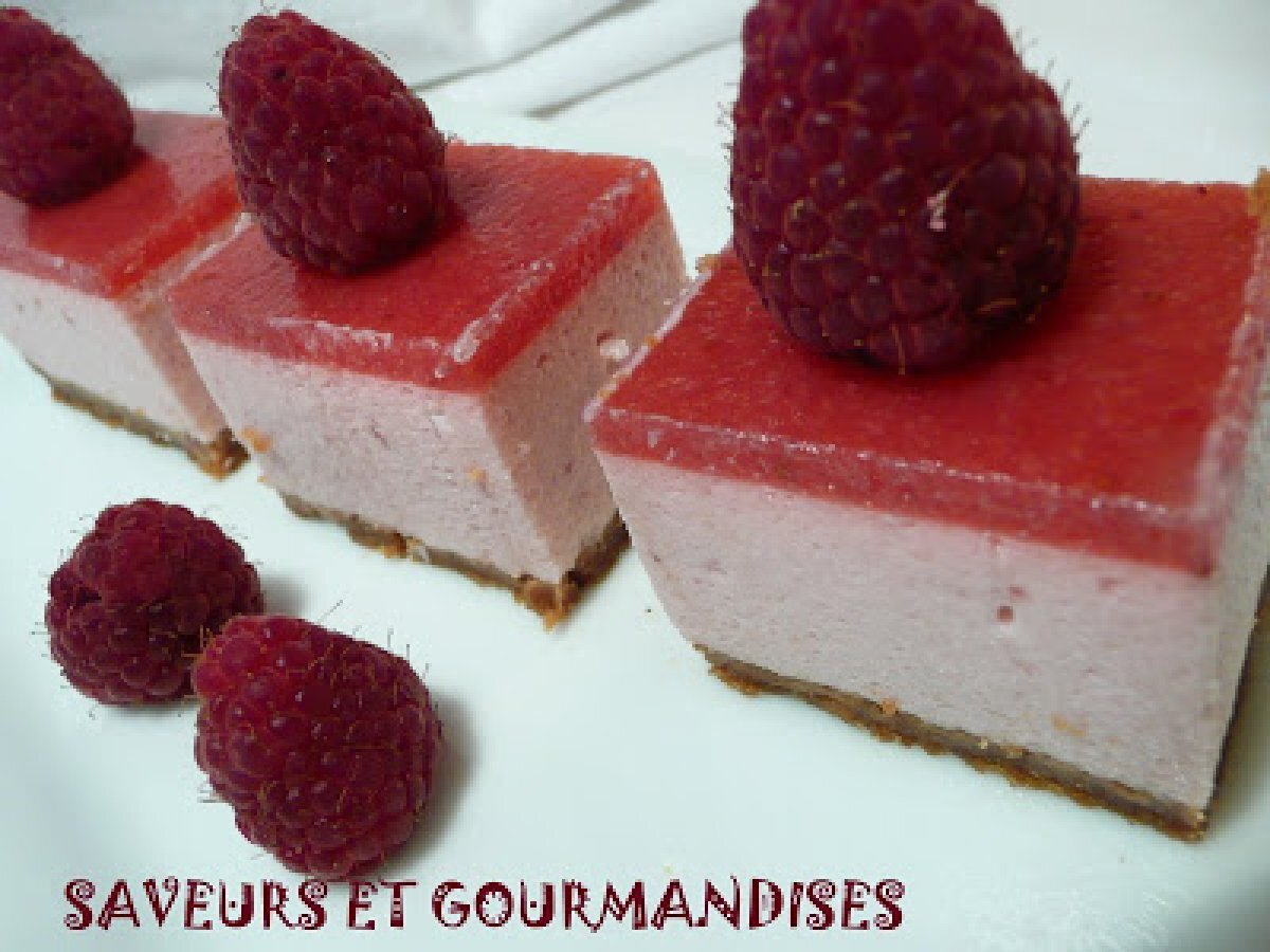 Mini-bavarois aux framboises. Dessertfacile23 min867 Kcal Envoyer cette recette à un ami Imprimer cette page Poser une question à l'auteur Publier votre photo de cette recette Ingrédients 4 Pour le coulis de framboises : 250 g de framboises 50 g de sucre 3 feuilles de gélatine Pour le bavarois: 200 gr de yaourt 200 gr de framboises 6 feuilles de gélatine 8 cl de lait 25 cl de crème liquide entière 80 g de sucre 3 jaunes d’oeufs Pour le fond : 200 g de spéculoos 80 g de beurre Coût estimé: 10.55Euros€ (2.64€/part)